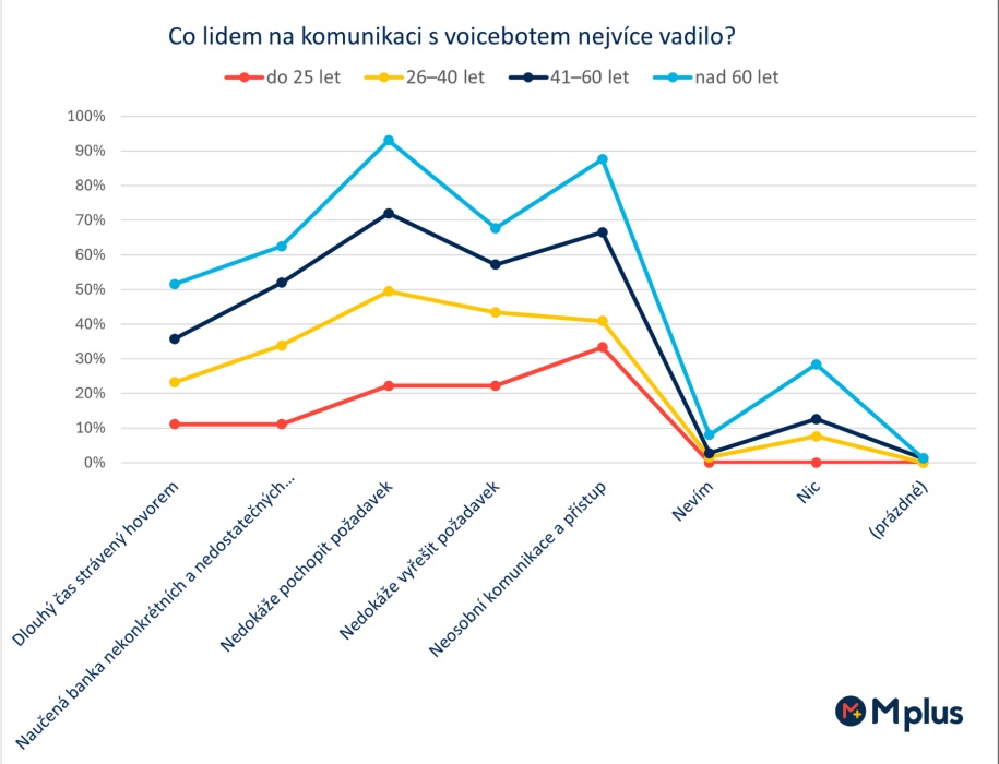 Opakování požadavku voicebotovi, který nerozuměl, rozladí každého. Pokud si český zákazník může vybrat, volí většina (79 %) komunikaci s člověkem, a to nehledě na to, z jaké je generace. Pětině zákazníků (19 %) voicebot nevadí, pakliže rozumí tomu, co po něm chtějí. Právě zde dochází při implementaci AI do zákaznických linek společností k nejčastější chybě.
