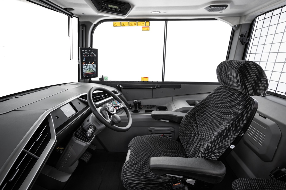 Uspořádání kabiny je navržené tak, aby se stroj dal ovládat pohodlně a bez zbytečné únavy. Ovládací prvky jsou přehledně rozmístěné a celková ergonomie je výrazně na vyšší úrovni. Díky lepšímu výhledu z kabiny je práce bezpečnější, hlavně v rušném provozu nebo ve stísněných prostorech. Pro podporu snadného používání a bezpečnosti jsou nové dampry Develon také vybaveny funkcí automatické brzdy, která automaticky udržuje stroj v klidu během vykládky, čímž snižuje pracovní zátěž obsluhy a zlepšuje ovládgání.