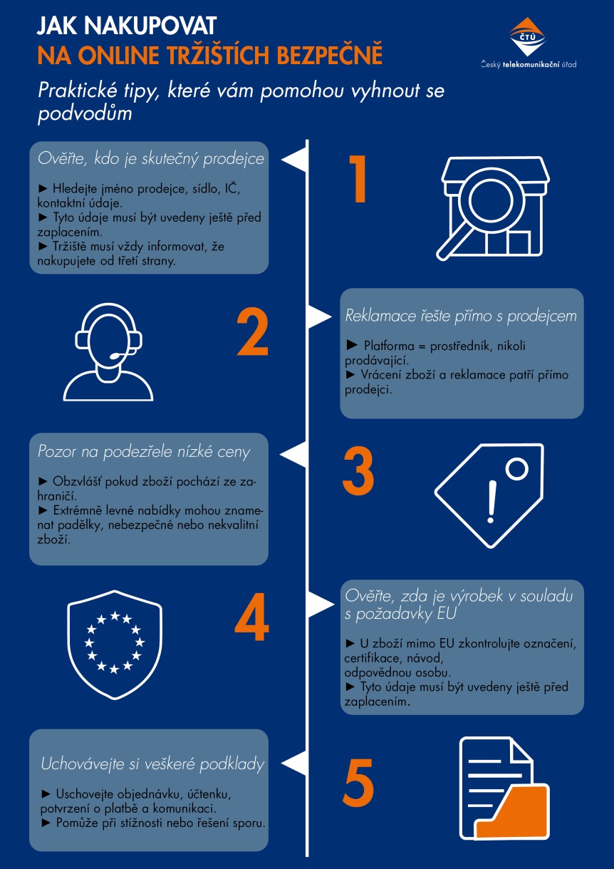 „Před nákupem na online tržišti je klíčové zjistit, kdo je skutečným prodávajícím. Právě vůči němu budete uplatňovat reklamaci nebo vrácení zboží. Tržiště většinou funguje pouze jako prostředník a jeho vlastní garance jsou navíc jen doplňkem k zákonným právům. Vyplatí se proto pečlivě projít i jejich podmínky. Nízká prodejní cena na tržišti by vás totiž mohla nakonec vyjít poměrně draho," uvedla pro ČTÚ Eduarda Hekšová, ředitelka DTestu.