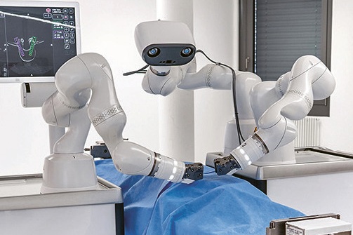 Příklady využití „fyzické AI“ ve spolupráci společnosti Nvidia a jejích různých partnerů: Caterpillar (vlevo), LEM Surgical (vpravo nahoře), AgiBot (vlevo dole) a Franka Robotics © Nvidia