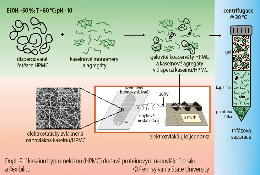 Hlavní protein mléka savců kasein a látka odvozená z rostlinné celulózy se staly součástí nové udržitelné technologie, kterou vyvinuli odborníci Pensylvánské státní univerzity. Pomocí elektrostatického zvlákňování (electrospinning) vytvořili z kaseinu a hydroxypropyl methycelulózy, pocházející z rostlinného materiálu, nanovlákna, která jsou tisíckrát tenčí než lidský vlas. Z nich poté vyrobili materiál, který by se mohl stát základem řady zajímavých produktů, jako jsou například biologicky rozložitelné, nebo dokonce jedlé obaly potravin. Nabízejí se i aplikace ve tkáňovém inženýrství nebo v biomedicíně.