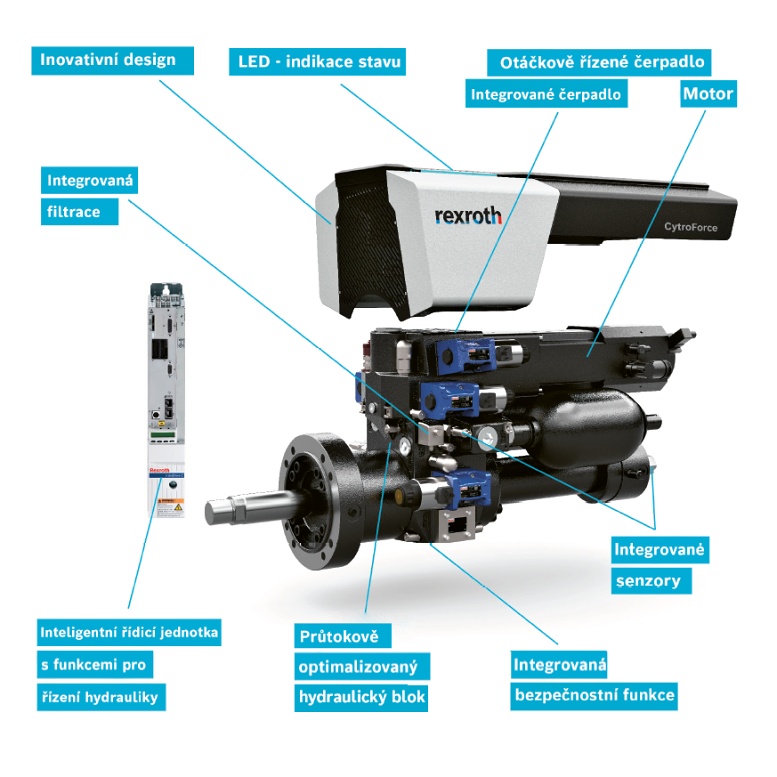 Odborníci na průmyslovou hydrauliku ve společnosti Bosch Rexroth kompletně přepracovali elektrohydraulické osy a vyvinuli ucelené inovativní řešení s názvem CytroForce. Aplikační inženýři firmy jsou schopni během 12 týdnů připravit ve spolupráci se zákazníkem lineární osy, které jsou předem nakonfigurované a nachystané pro přímou instalaci do systému.