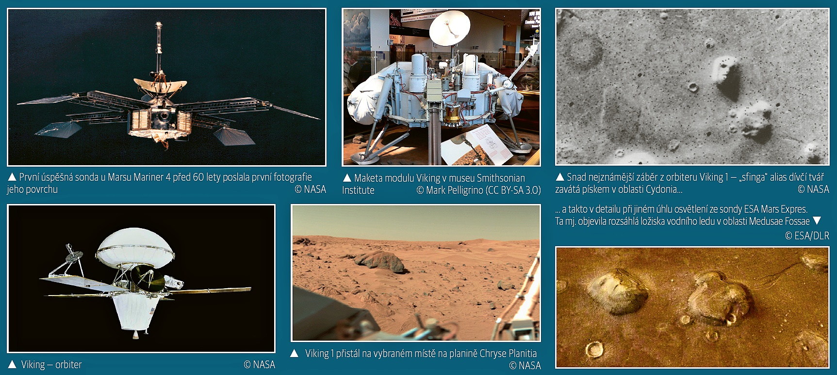 Mars je dlouhodobě předmětem snů a vizí, a tudíž i lákavým cílem lidských výprav. A právě toto léto nám připomnělo dvě významná výročí našich snah o poznání „rudé planety“ a hledání odpovědi, zda na na ní byl, či ještě existuje život. Byť v podobě mikroorganismů či organických sloučenin. V polovině července uplynulo už 60 let od prvního přímého pozorování Marsu americkou sondou Mariner 4. Na 21 fotografiích, které sonda vyhotovila mezi 14. a 15. červencem 1965 při průletu ve vzdálenosti 9 846 km kolem Marsu, byly viditelné až 3km detaily, na kterých se dalo rozpoznat 70 impaktních kráterů o velikostech 4—120 km.