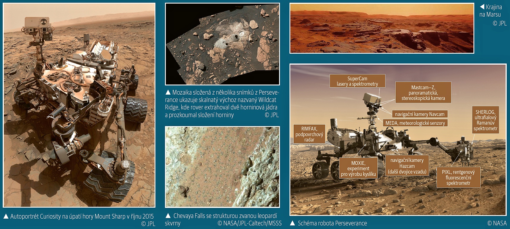 Letos 8. září NASA oznámila, že vzorky hornin odebrané roverem Perseverance v kráteru Jezero nabízejí i na dálku „dosud nejlepší důkaz o minulém životě na Marsu“. Zhruba před rokem totiž robot objevil kámen, na němž se (ale i na dalších podobných ve formaci zvané Bright Angel) nacházejí skvrny připomínající leopardí vzor. A podle analýzy týmu, který vedl geolog a planetární vědec Joel Hurowitz z Newyorské státní univerzity ve Stony Brooku, je nejlepším vysvětlením přítomnosti „leopardích skvrn“ biologický proces, tedy že skvrny mohly být vytvořeny primitivním životem v rané historii planety, když byla teplejší a vlhčí.