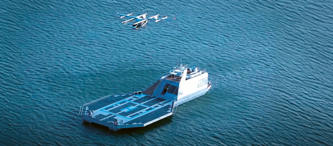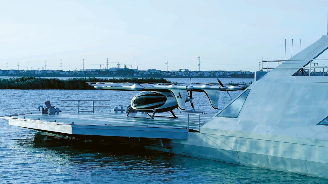 Aerotaxi představují slibnou službu pro individuální přepravu zákazníků, která se ve třetím rozměru vyhýbá často neproniknutelným dopravním situacím nejen v městských aglomeracích. AutoFlight Aviation Technology proto vyvíjí mobilní vertiport, tedy zařízení pro potřeby elektrických letadel s kolmým vzletem a přistáním eVTOL (electric vertical take-off and landing), které je v podstatě lodí na solární pohon. Ta může poskytnout přistávací plochu kdekoliv na vodní hladině.